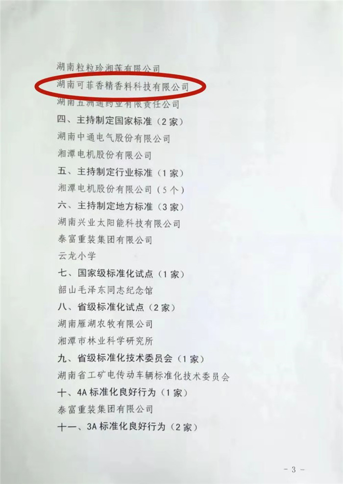 在湘潭市质量工作暨第二届市长质量奖颁奖会上,湖南可菲香精香料科技有限公司喜获湘潭市质量技术监督局与财政局关于标准化和品牌建设项目专项奖励!
